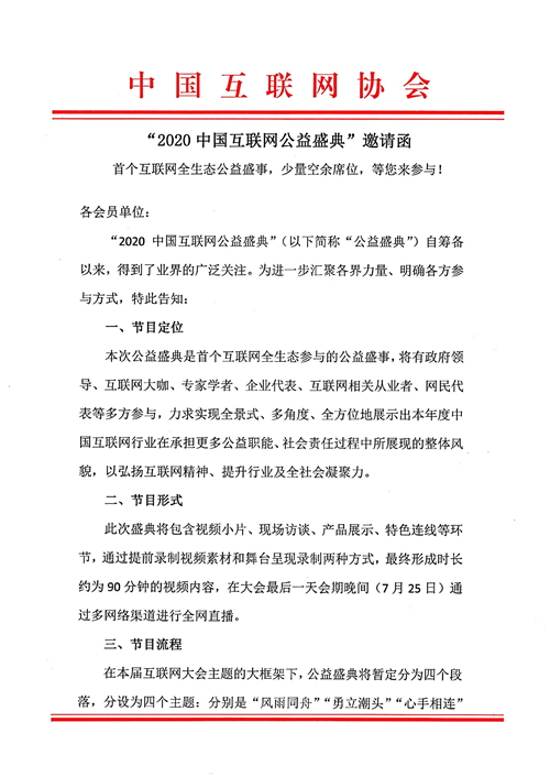 2020中國互聯網大會丨 “2020中國互聯網公益盛典”邀請函:首個互聯網全生態(tài)公益盛事,少量空余席位,等您來參與!